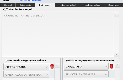 En esta pestaña dispone de un amplio campo de texto, donde podrá describir de forma detallada el tratamiento que ha indicado y 2 campos de selección rápida: